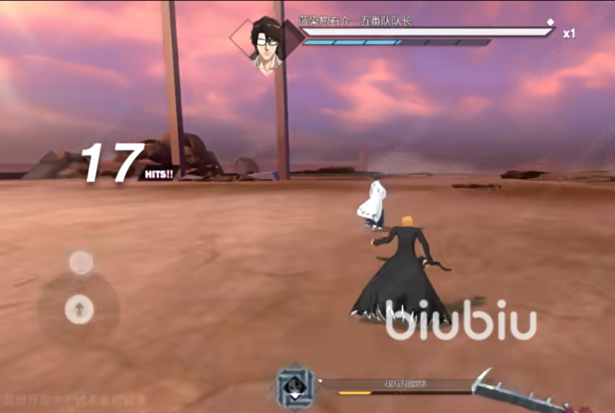 在攻击蓝染之前,蓝染会进入无限闪避状态,这个状态下玩家不论如何攻击都无法接触闪避状态,所以需要尽可能地使用快刀接近蓝染进行攻击,只要等闪避状态结束,这时候玩家攻击就能造成高频率的伤害,而且还有协站的队友一起攻击。