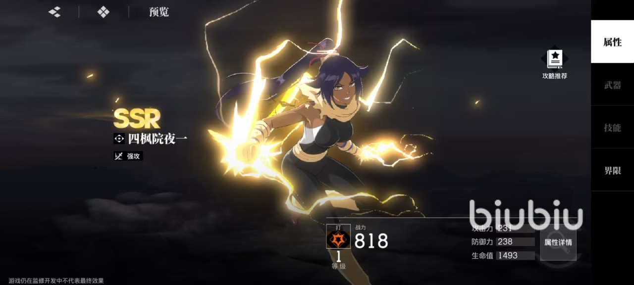 排名第四的是四枫院夜一,这是一名强攻角色,也擅长近距离单体输出,核心能力是闪避反击。只要能保持连击数,就可以获得高额伤害加成,具备在场上持续输出作战的能力,还具有机动性高、生存能力强等优势。当然使用起来也具有一些难度,上手方面需要多练习一些。