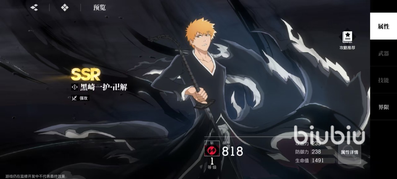 在节奏榜中强度排名第一的当然是限定角色黑崎一护万解,这也是目前游戏中的首个限定英雄。它是近距离单体输出的核心,可以快速释放连续战机,只需要大家掌握好一定的技巧就可以代替高普攻高频率释放,所以在实战中输出非常高。还可以利用自身的技能直接标记远距离的敌人,然后快速冲到对方身边进行输出,既有爆发伤害又有高机动性。