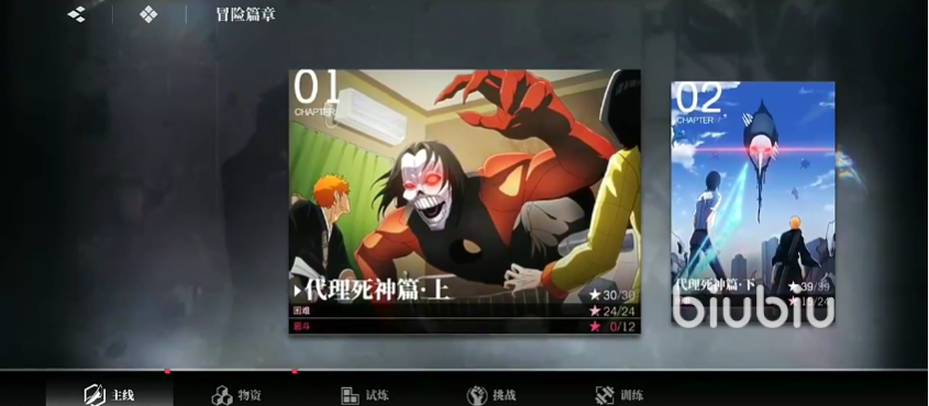 游戏的玩法大致分为了5类,分别为主线,物资,挑战,试炼,还有最后的训练模式,目前主线关卡一共开放了8篇,每一篇都被区分为了3种难度,难度从低到高分别是,普通,困难,以及恶斗,通常通关了上一难度后,下一难度就会自动解锁。