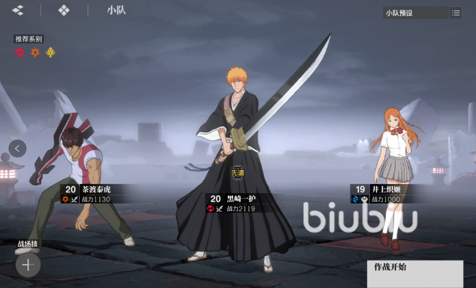 对于新手玩家来说,前期最合适的这种组合就是黑崎一护、井上织姬和茶渡泰虎。黑崎一护是初始赠送的核心输出角色,虽然是开局赠送,但是强度绝对不低。它的普攻的伤害可以精准锁定残血目标,在普攻强化后能快速累积能量,既有单体爆发又有清场能力,所以在前期无论是推图还是pvp都是当之无愧的核心人选。培养的时候应该优先去升级技能等级,搭配上暴击率提升的刻印,强化收割能力。