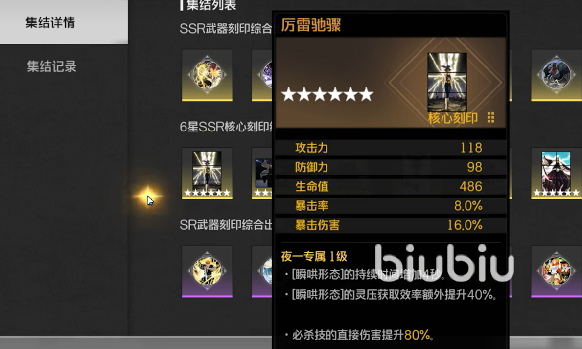 游戏中的装备被官方称之为刻印,每个角色最多能够携带六个刻印,玩家在游戏中如果想要获得刻印的话可以选择刷副本,或者通过卡池抽取ssr刻印,每一个ssr刻印都有对应的角色,当角色携带了对应的刻印时能够为自己的技能提供特殊的加成。