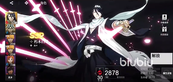 若是处于卍解状态,会操控樱花一般的巨浪对敌人展开攻击,总共可造成三次伤害,并在命中后积累自身的灵压,他的必杀技会把整个刀身解放成细刃,以超快的速度,对敌人造成330%伤害,并进入到卍解状态之中,此时的普攻和战技都会得到强化。