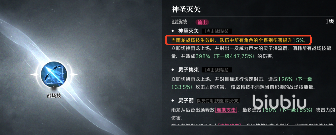 然后是角色定位,有战术、强攻、支援。战术角色之比较关键的,拥有独特的战场技,伤害倍率往往是最高的。但需要特定的角色组合才能激活,激活后可以获得全系的伤害加成,切换的队友释放技能可以积攒战场技的能量,战术角色本身也可以在后台协攻攻击。