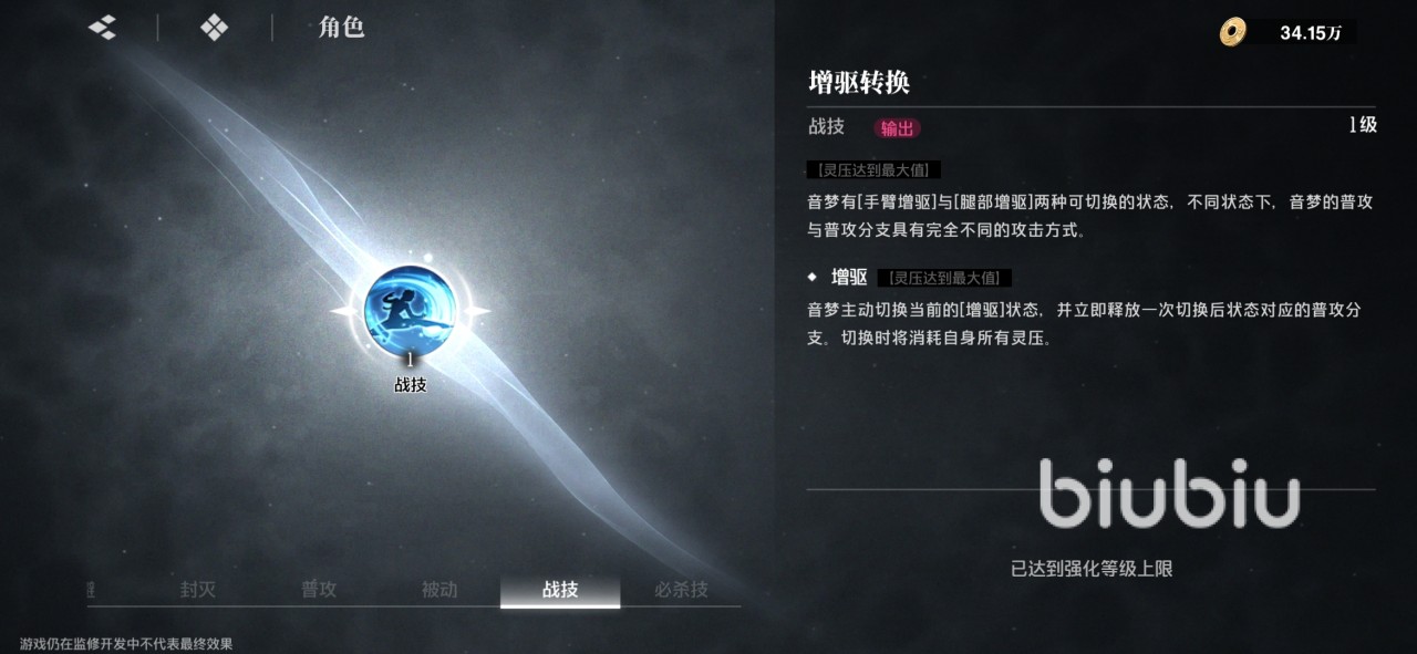 涅音梦的最大特点就是可以在“手臂增驱”和“腿部增驱”之间切换形态,每次切换都会立刻释放一段特殊的普攻分支。不过,这种切换是有代价的,会消耗全部灵压,因此使用时机需要玩家自己判断得当,太早或太晚都会影响输出效率和连招节奏。
