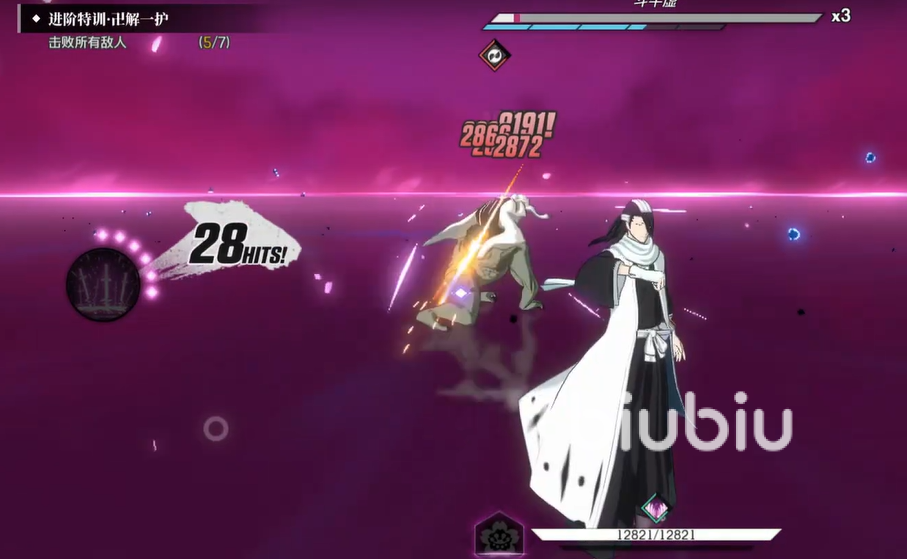 到了最后阶段,朽木的大招应该也是好了,那么就启动大招,此时天空中会出现漂亮的樱花对敌人造成单体伤害,同时该阶段不会受到任何伤害,为了能一击必杀敌人,可以再次切换一护进行黑刀连击,如果能量条再次满值的话,那么一护直接大招就能完成华丽的收尾,这套连击的分数很高,而且全程可以不受伤害。