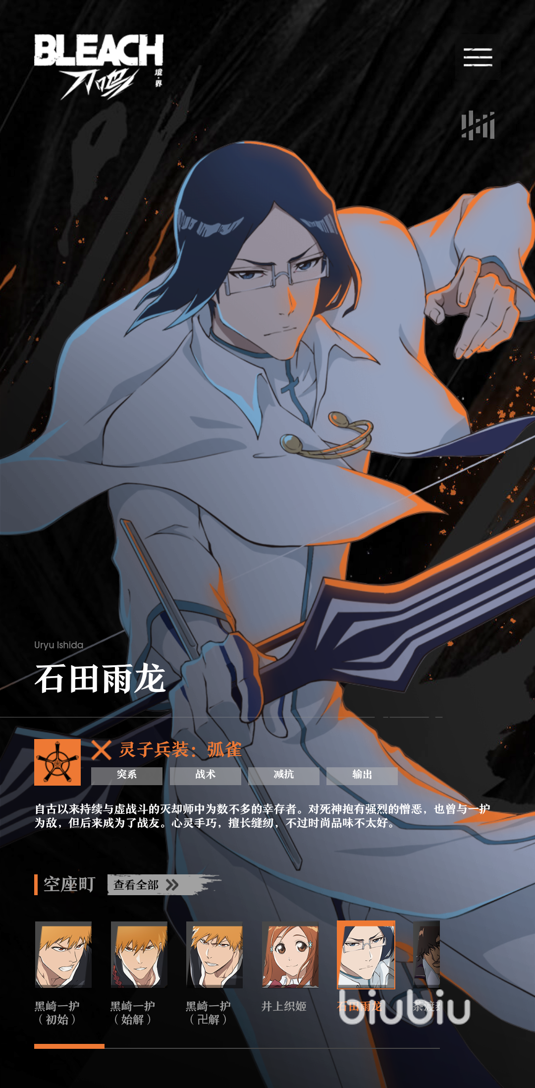 石田雨龙的攻击节奏很流畅。普通攻击能打出多段射击并积攒能量,战技能快速连射灵子箭,是主要的输出来源。战场技Ⅰ用来打爆发,能瞬间清掉精英或BOSS血量;战场技Ⅱ可以不消耗能量打补刀,保持连招节奏。封灭技能能反打近战敌人,而大招【光之雨】范围广、持续时间长,是他在各类副本中清场的关键手段。