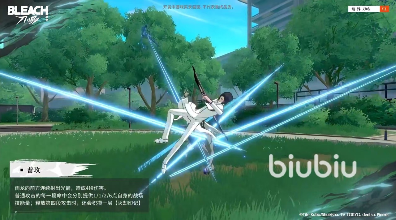 石田雨龙的普攻可以向前方连续发射多支光箭,造成多段伤害,每次命中后都可以给自身提供能量,在第4段攻击时还会额外积攒一层印记。战斗技能需要短暂瞄准,然后朝前方连续射出多支箭矢,造成伤害并积攒印记,命中时可提供能量。必杀技是向前面区域内连续发射箭矢,敌方受到范围伤害,并累积一层印记。战场技能需要连续两次或者是更多次数的连携攻击后才可以激活。激活之后,队伍中所有的角色攻击力都能获得加成。