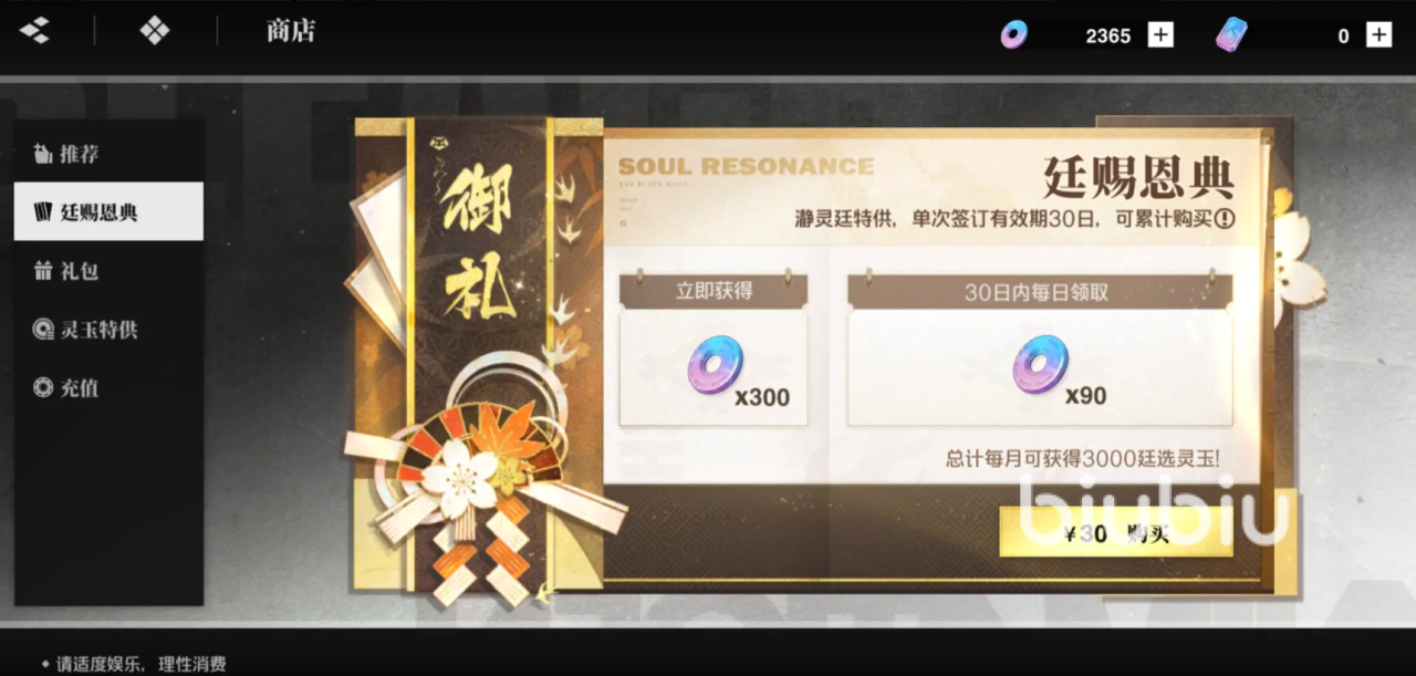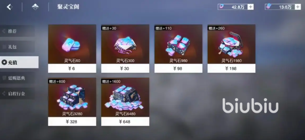 首先是灵玉商店,这是能稳定兑换灵玉的重要途径,这里主要就是出售灵玉的各种礼包,有些商品是可以通过充值直接获得的,也就是氪金能购买到指定数量的灵玉,这种方式是非常高效的,不过这种氪金的方式也需要理性,避免过渡消费。