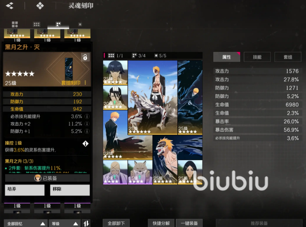 此外它们所带来的词条效果方面也很是给力,主要是分为被动技能词条以及套装激活效果等,并且被动技能词条有几十条选择,不同角色装备特定刻印后,更是能直接去激活专属被动技能,像更木剑八的专属刻印就可以让其在狂战之鬼形态下释放一整套的输出,迅速提升其战斗能力。
