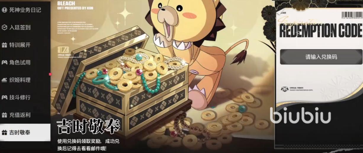 很多传统手游的礼包码兑换位置一般是在头像设置附近,或是菜单设置里,但是境界刀鸣有点不一样,它是在活动中心里。从主界面右上角图标第一项进入,然后找到最下方的“吉时敬奉”,这个就是兑换选项了。