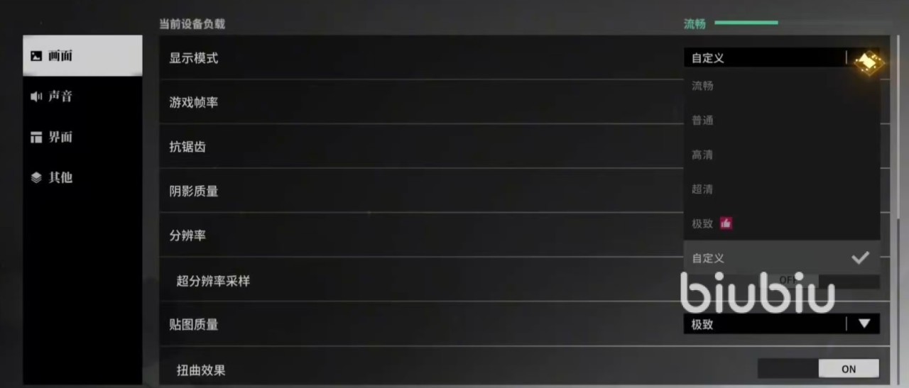 主要选项包括显示模式、游戏帧率、抗锯齿、阴影质量、分辨率、贴图质量等。显示模式比较推荐自定义,这样自由度高。帧率方面手机最高达到60帧,如果硬件足够,就优先锁60帧,保持手感不足就锁30帧。辨率方面尽量拉满,这是画质的基础。超分辨率可以选择,低配置可开提清晰度,高配置可以关闭。抗锯齿方面有两个选项,TAA更加稳定,FXAA则更省性能,大家根据自己的硬件去决定。