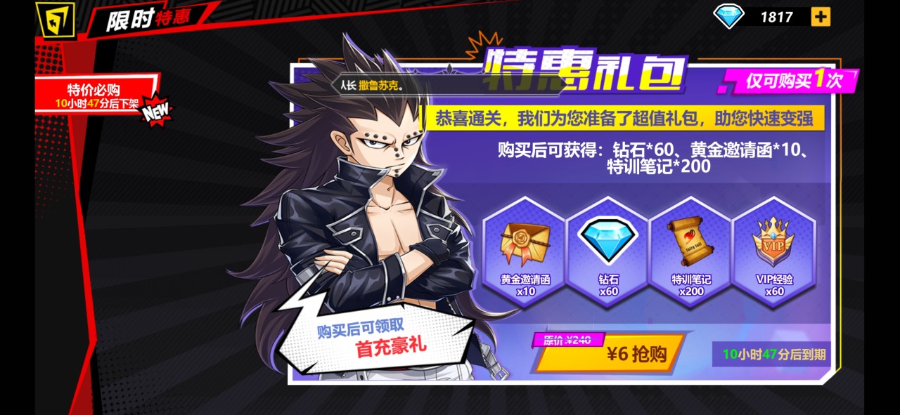 第二个建议大家氪金的位置就是限时特惠礼包,限时特惠出现的时间是随机的,如果一旦出来,大家一定要把握好时机,一般限时特惠礼包的价格都不算太贵,六元12元24元左右,当然东西还是不错的,比如黄金邀请函,大量钻石以及VIP经验都可以获得,值得注意的是,限时礼包是限定了玩家购买的时间,如果时间一过,可就过期不候了,花六块钱就可以获得一大批资源,还是不错的,小编在这里建议大家氪金,一定不要丢失这个。