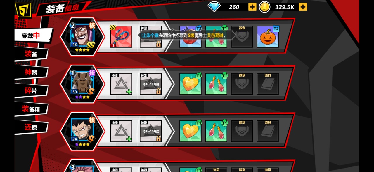 然后就是这个游戏的装备以及神器问题了,小编在这里还是建议将所有好的装备全集中到ss级角色上面,他们的战斗力就会更好的得到提升,把他们放到战斗的第一个可以瞬秒,对方就缩短了战斗的时间,从而感觉游戏不那么累赘,大家如果觉得这款游戏战斗特别无聊的话,也可以开启二倍速哟。