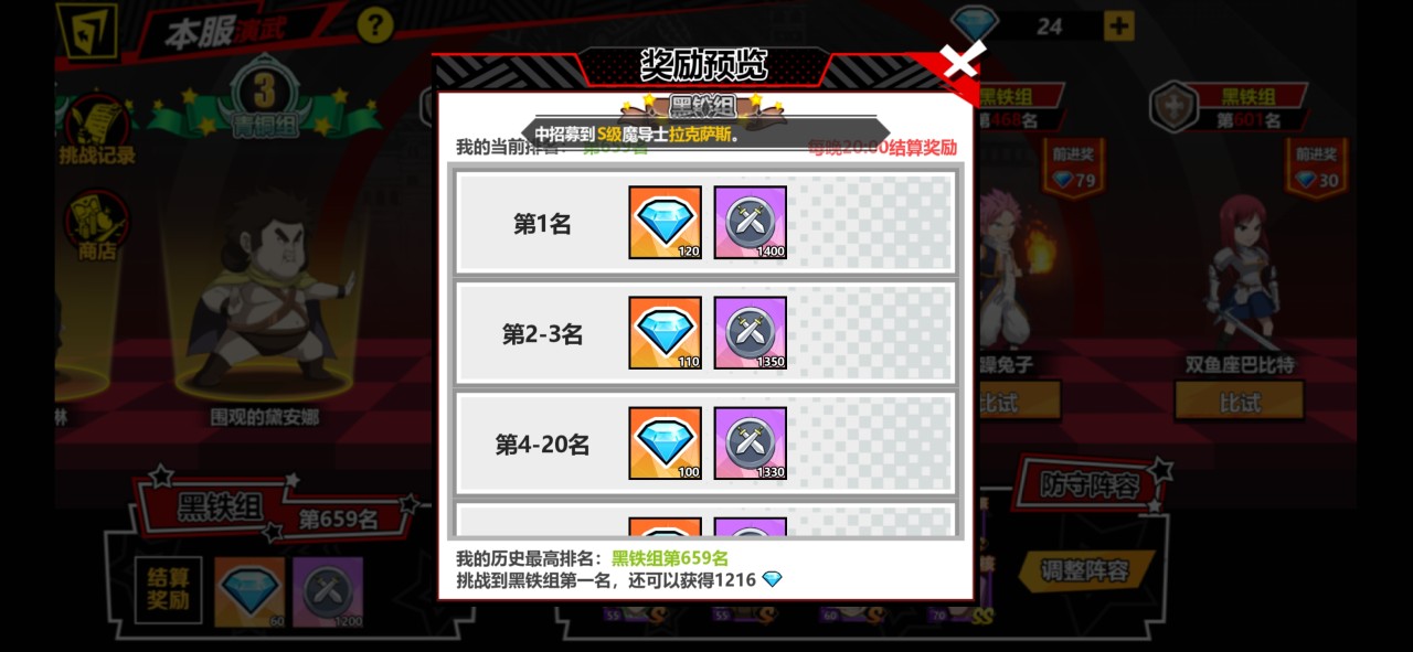 当各位玩家进入黑铁组,也就是前1000名的时候,结算奖励会获得1200个荣誉币,第一名的话会获得120个钻石,再加上1400个荣誉币。在荣誉币中,每个月的一号凌晨4点就会刷新所有的物品,也就是各位玩家不可以主动刷新刷出来什么只能买什么。