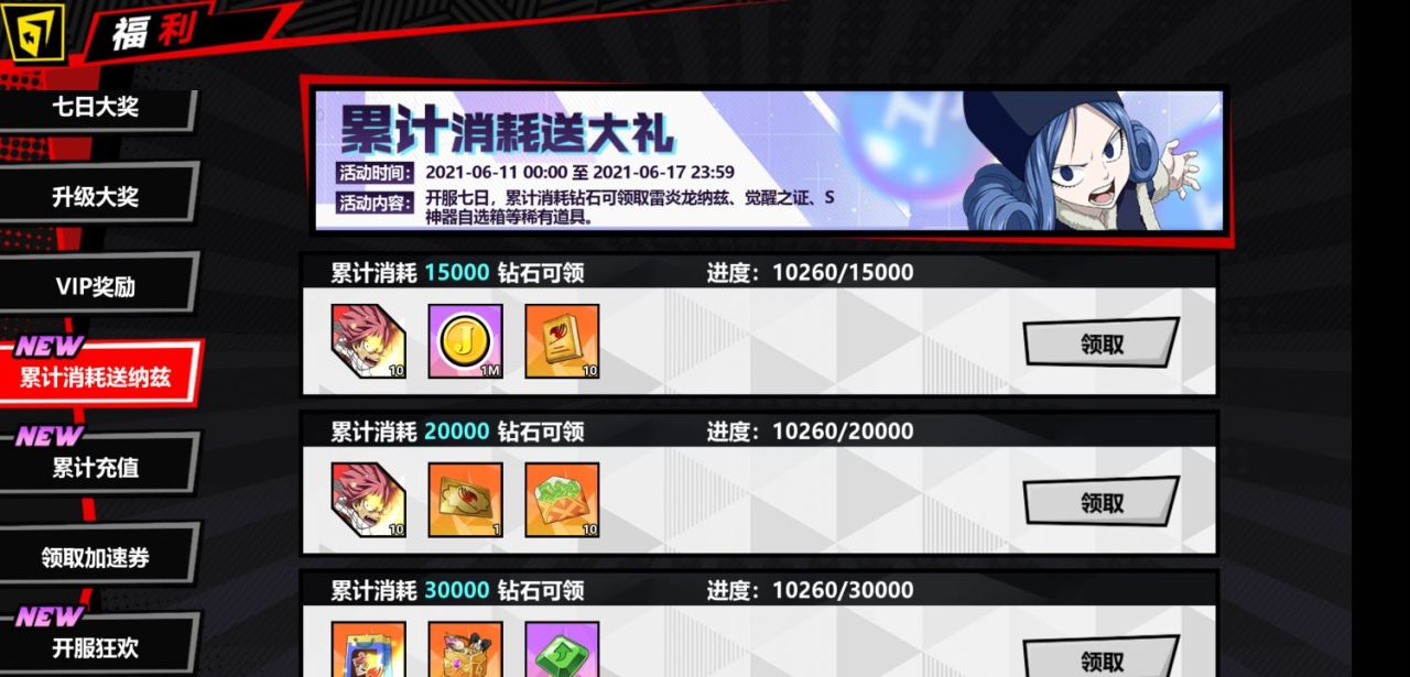 第三种使用钻石的方法就是累积消耗了,在新注册一个账号之后,累计消耗钻石15000就可以获得一个亿的金币以及十个雷炎龙纳兹的碎片,集齐120个就可以兑换ss级别魔导士,雷炎龙纳兹,这个魔导士的群伤能力非常的强,以及拥有的超高的爆发能力,如果配合上布兰恩这个加移速的魔导士的话,可以让敌方根本就出不了招,瞬间团灭。
