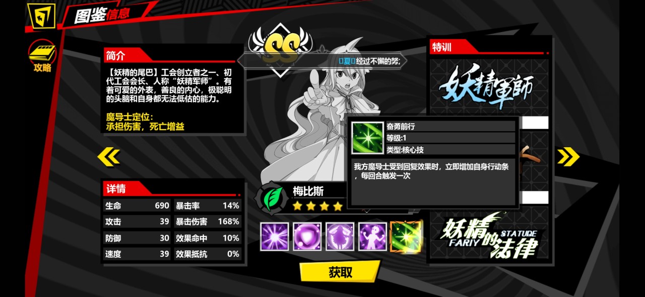 然后就是她的觉醒技能了,需要各位玩家使用觉醒之证,在培养的时候将她的这个技能觉醒,妖精意志,梅比斯秉持着妖精的意志参加战斗,任意队友死亡之后,都会为我方全体施加无敌和攻击,提升效果,队友死亡之后,它就可以为队友进行增益,这个技能设定简直太恶心了,也就是整个队伍都会越战越强,增加的无敌效果可以持续两个回合,这两个回合其他魔导士放两套技能足以将敌方消灭。