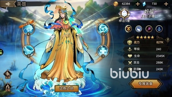 妈祖,治愈型的辅助。技能“涡流”可以给自己回怒,同时在场地里召唤旋涡,旋涡会自动靠近敌人,降低他的急速和能量,同时打出持续伤害。技能“浪涌”,水流在目标间随机流动,命中己方单位会治疗,命中敌方单位会造成伤害。被动技能“生生不息”在其他英雄阵亡的时候立刻复活该英雄并恢复其过半的血量,升级后复活的英雄还有持续回血buff。大招“海浪天阶”群体治疗兼群体伤害与击退。