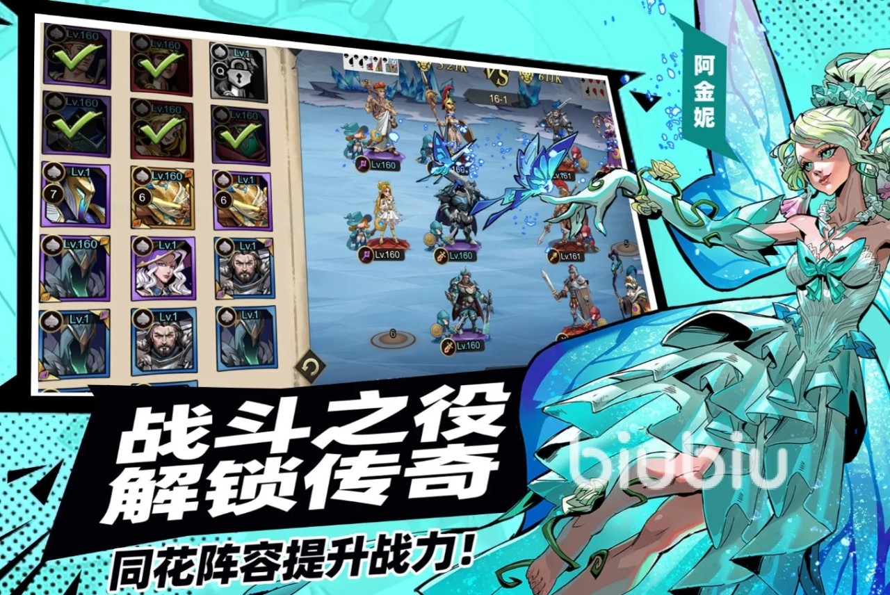 玩法方面,有着非常经典的放置玩法,只需要轻松挂机即可收获大量的资源。甚至可以全程随时暂停,减少各位玩家们的游玩负担。同时,对扑克牌元素当中的王牌与鬼牌进行结合,来对特定阵营进行的划分,以顺子对子等等构成羁绊,组成更强大的队伍。