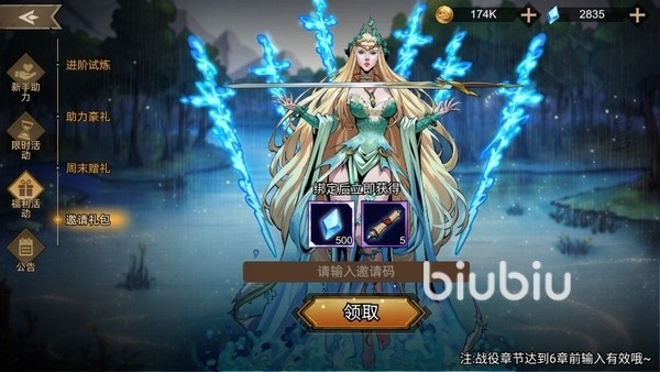除了上述礼包兑换码外,游戏中还有邀请礼包,在首页右侧的活动入口进入后,找到福利活动最下方的“邀请礼包”,输入别人的邀请码就可以得到500钻和5次单抽,这个奖励是一次性,大家记得领哦!