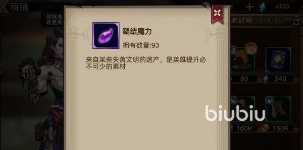 除了抽卡,前期钻石的另一个主要使用途径是去主城商铺购买凝结魔力,凝结魔力是英雄提升所必须用到的,突破人物等级上限,升级技能都需要用魔力,而且越往后缺口越大。适当时候还可以用钻石去刷新一下商店次数,兑换更多的魔力。