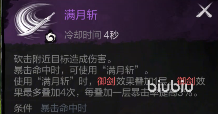 所以一般给剑的能力值增加以力量和敏捷为主。前者可以增加剑类武器基础的攻击下限和上限。后者则是可以进一步增加攻速,同时增加暴击率。剑本身是属于近战伤害,所以这种能力值的加点是最适合这种武器的。它可以在攻击的时候不断的叠加增伤以及爆伤的BUFF。让我们本身的输出能力得到一定程度的提升。剑的核心技能是满月斩,这个技能是我们在打出暴击的时候会自动出现,它最大的优点是可以为我们不断的叠加御剑的伤害,让我们本身的输出更加的稳定。