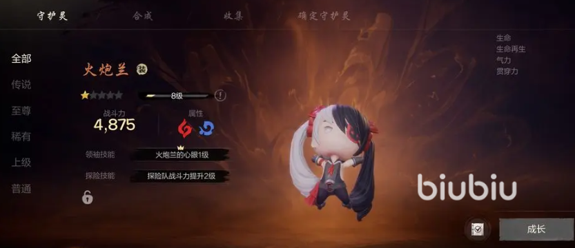 作为远程输出类武器职业,自然是要将输出进行到底,所以守护灵选加攻击属性的最好,这样召唤之后可以将全部属性给到角色。最顶级品质的推荐阿朗(加贯穿)/煜明(加攻击)/霰玲(加暴击),次一级的话可以选火炮兰(加贯穿)/千甄拳(加命中)/洪玄公(加攻击),初级的则可以考虑用雷神、道天风、郑忠胜这些过渡。