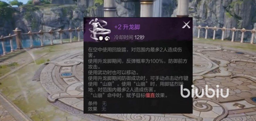 升龙脚,空中回旋踢,最多对2个敌人造成伤害,在使用这个技能的期间可以获得100%反弹概率,抵挡住前方的攻击,而且在使用这个技能的时候也是可以移动的,使用升龙脚成功抵御敌人的攻击后,可以手动点击动作键衔接“山崩”,踩踏地面对最多2个敌人造成伤害。山崩打中敌人会有僵直效果。技能强化是增加升龙脚的范围,同时山崩作为目标数加1。