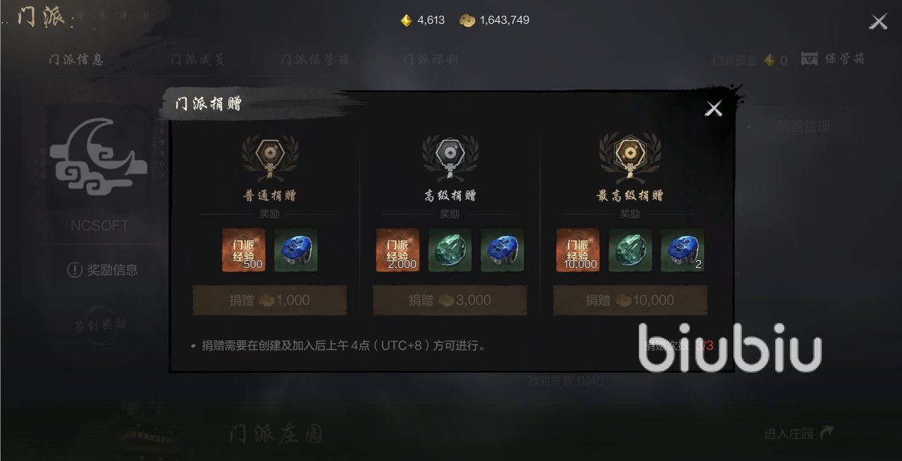 如果大家解锁了门派,就可以添加门派,加入门派之后,大家完成一系列的门派任务,都是能够得到相关奖励的,能够获取资源的方式更多了,只要每天签到就能获得一定数量的绑定神石奖励,之后通过门派捐赠获得强化石奖励,每天可以捐三次,并且可以捐的金币档位也是不一样的,捐的越多,大家可以得到的强化石就越多。
