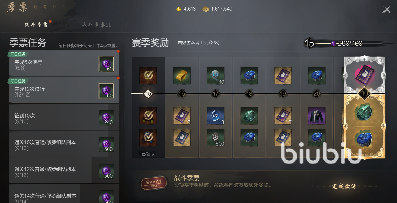 此外就是季票任务了,在这里小伙伴们完成相应的任务,每提升1级自己就可以得到制定的一些奖励,升的越快,大家能够拿到的季票资源就越多,这样就可以加快相应的升级速度了。