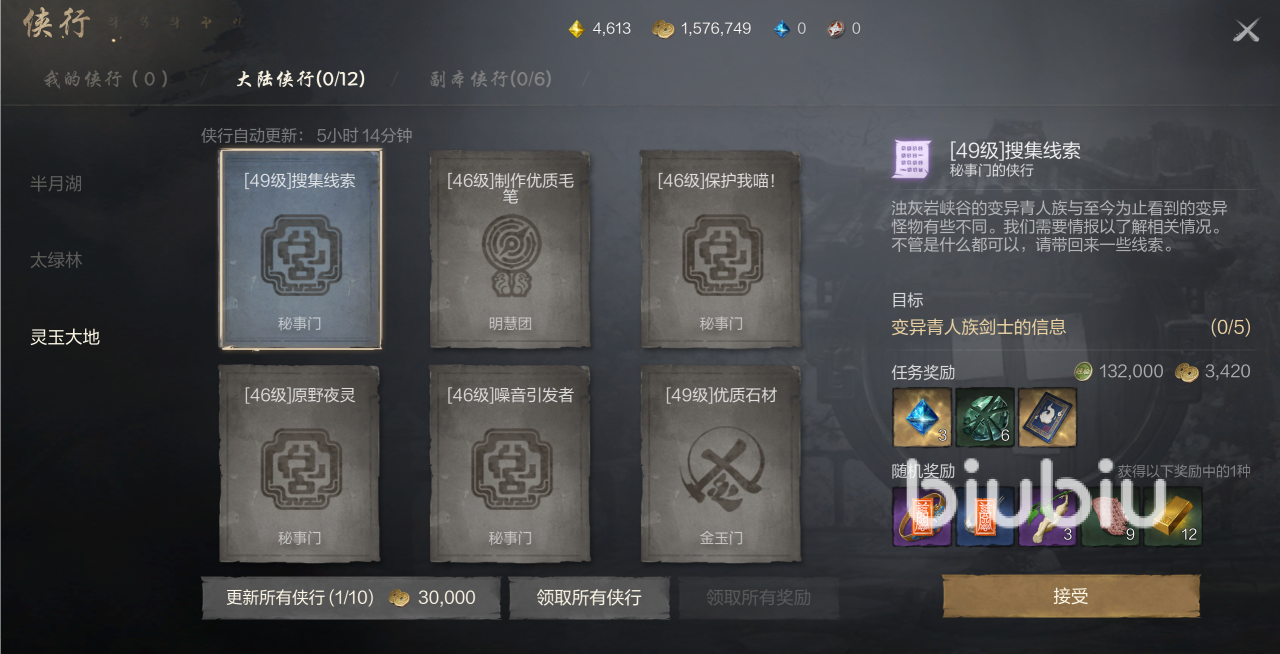 此外,大家还可以进行侠行任务,相信任务完成的话可以得到不少的经验数值以及相关的绑定神石和金币以及强化碎石片等奖励,此外还能得到星光剑灵的召唤卷。另外大家也可以随机获得一些高品质的饰品或者是金条,灵药,秘诀。奖励的情况根据小伙伴们当前挑战的等级程度去判定,每天完成侠行的话都能够得到12抽的奖励,用来抽卡是非常香的,因为抽卡资源很紧缺。