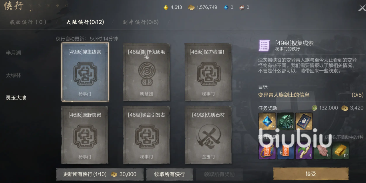 每天将侠行任务给完成都能得到星光剑灵召唤卷、大量经验值、金币、强化石碎片等丰厚奖励,随机奖励有高品质饰品、灵药、金条等,奖励最后的丰厚程度根据此次侠行的品质来定,但是每天完成都是必得12抽奖励,要知道抽卡资源是非常紧缺的,所以小伙伴们一定要抽时间将侠行任务完成一下。