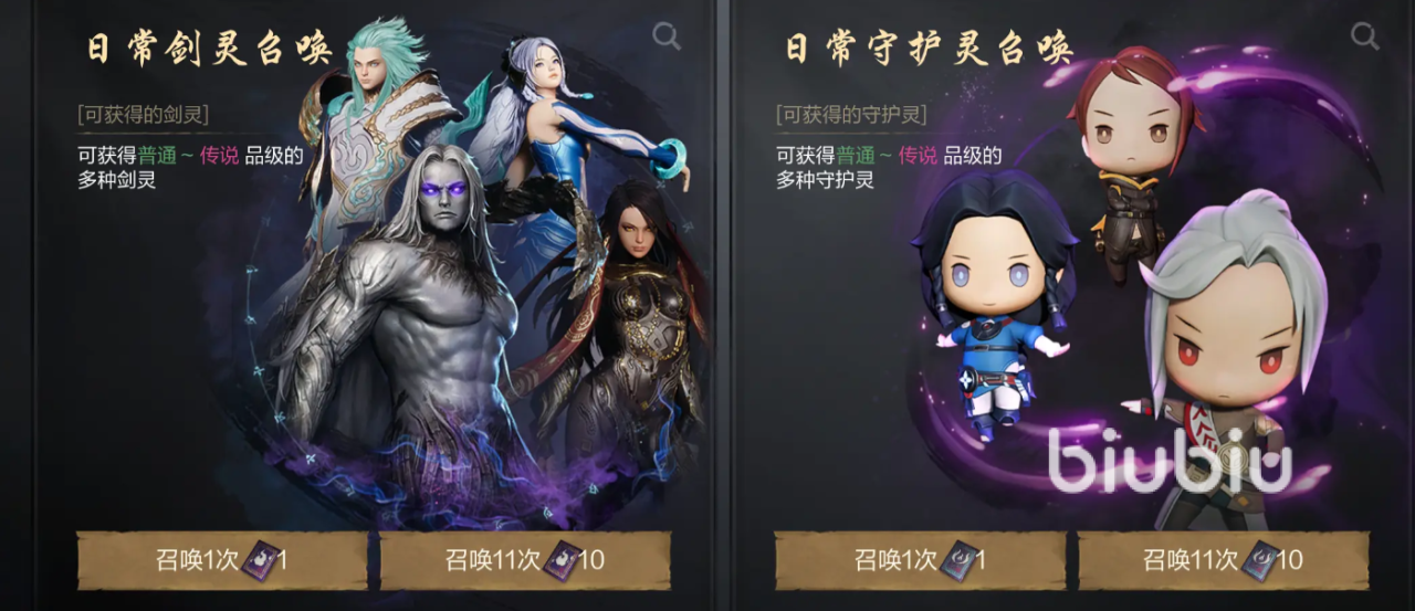最后介绍则是抽卡。在剑灵2之中,玩家们可以抽取剑灵或者是守护灵。它们都是可以直接上阵,然后提升我们的属性,同时还可以提高我们额外的属性加成。但是卡池里面剑灵和守护灵是很多的,如果没有计划的乱抽的话,很容易出现问题。