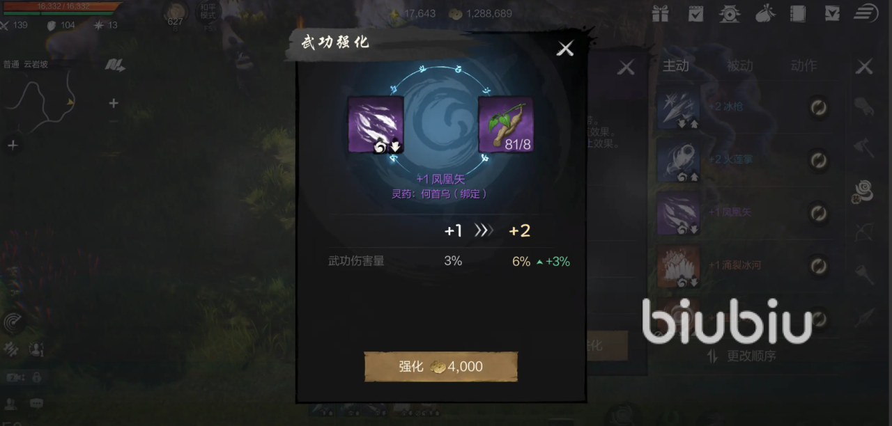 彩绫的被动能为角色提供属性加成和额外的效果,属性加成包括智力、智慧等,这些能提升彩绫的基础输出能力,额外效果则能让角色在被攻击的时候获得防御力,提升整体生存能力,强化主动武功能提升伤害,建议玩家优秀强化冷却短的武功,比方说冰轮和火莲掌,这两个武功在强化后冷却时间会更多,从而造成更多输出。