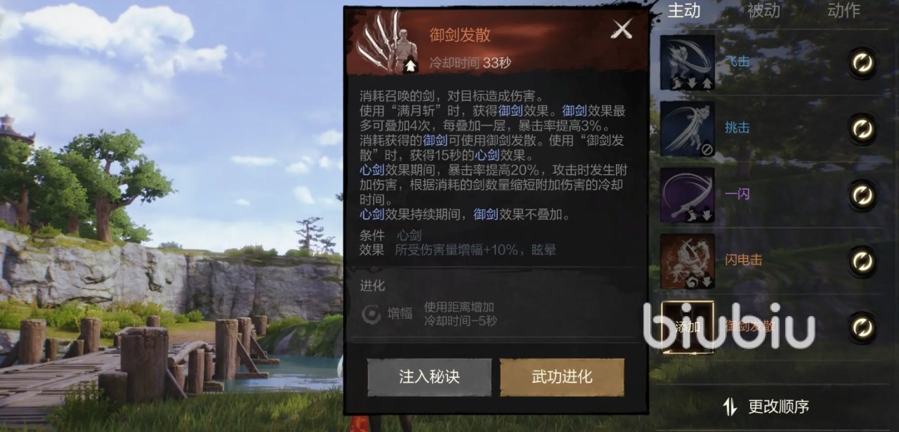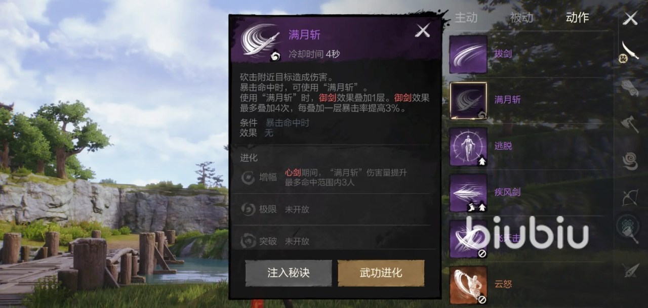 剑武器属于是越战越强的职业,可以持续打出稳定输出。核心技能是“满月斩”,暴击攻击打中敌人后才会激活,使用后可以叠加御剑效果,御剑效果则可以反过来叠加暴击,并且激活另一个橙色的技能“御剑发散”,获得更多持续暴击增伤类的buff。