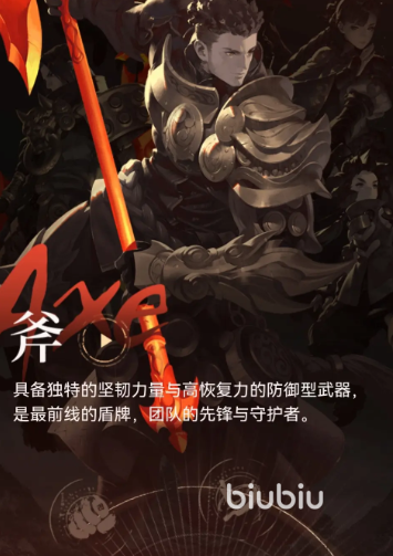 然后是是斧,这个武器虽然在宣传的时候有提到过,是具备坚韧力量和高恢复力的防御型武器,但是在测试中却并没有出现,所以没有太多可分析的地方,喜欢的小伙伴可以耐心等待,说不定后期就会上线。