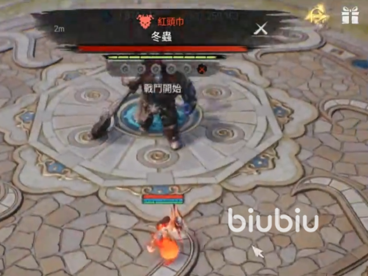 boss的第一个难点就是他的全屏释放的合击技,他会在短暂蓄力以后在全图释放一次火焰攻击,这个攻击的伤害量能直接削去玩家1/3的血量,但是可以通过格挡的方式降低伤害,该技能是瞬发技能,没有前摇,所以在技能读条马上满的时候释放格挡即可,但是由于延迟等因素的影响,判定可能会出现问题,所以在挡的同时要做好吃药的准备,一旦伤害跳出比较离谱就抓紧吃药把血量顶上去,防止boss追击。