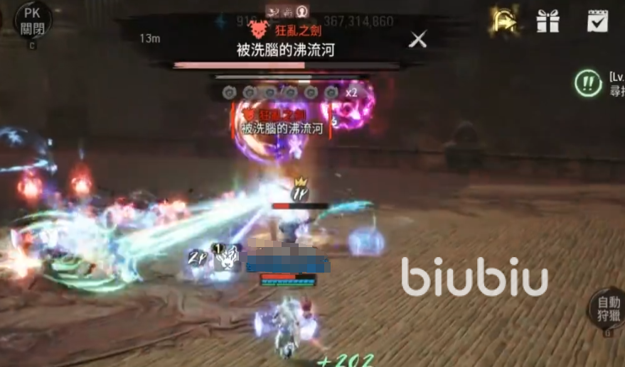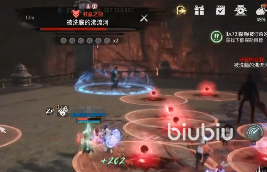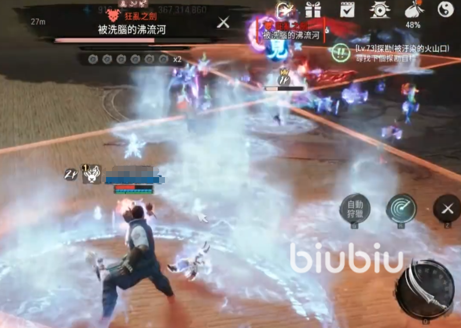 当沸流河的血量下降1/4以后,会进入一个长时间的狂暴状态,这时候战场的对角处会出现两个罩着蓝色光罩的NPC,同时场上会不断不规则的出现火红色的火团,场上的沸流河也会开始不断冲刺并造成大额伤害,这时候所有玩家都要停手然后赶到防护罩里面,待上一段时间以后就可以看到身上有一个蓝色的光珠,这种就可以用来抵挡沸流河的火焰伤害,避免一碰就死的情况,注意这个蓝色的光会消散,一旦消失就要马上回到防护罩那里续上。