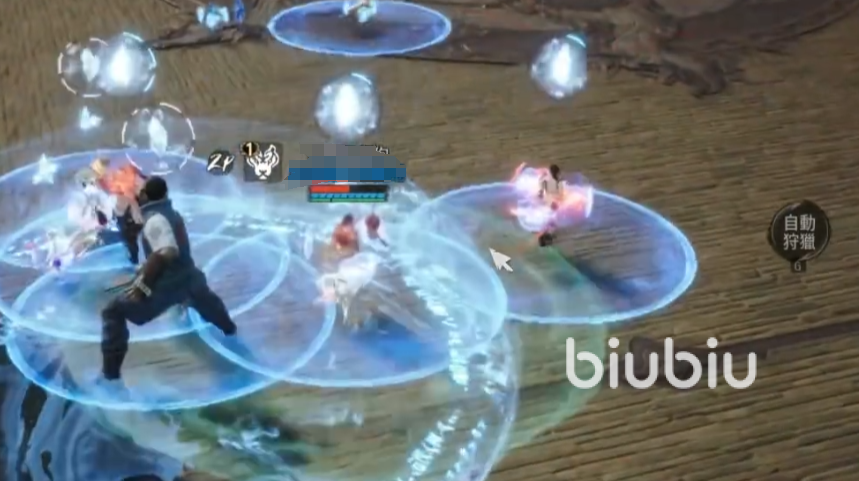 沸流河的起手技能是一个需要走位的多重火圈,他会按照向外、向内、再向外、再向内的顺序一连释放五次火焰攻击,最后一次是整个范围全部用火烧一次,这个技能每一次火焰喷射都有接近玩家1/4血量那么高的伤害,所以要按照规律尽可能地躲开每一次技能,最后一次可以在蓄力条满的瞬间使用格挡技能,就能让沸流河进入眩晕状态,然后叫上公会的小伙伴们集火压血量就可以了。