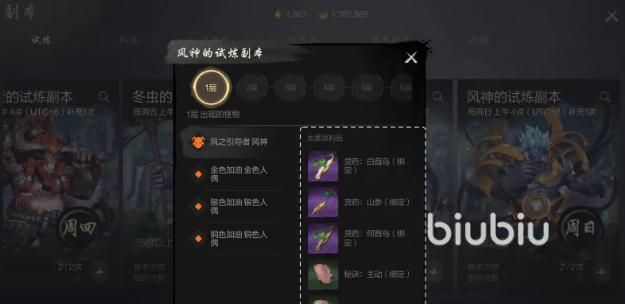 洪梅花和龚亚查的试炼副本主要提供武器和防具、斗战圣和冬虫的提供强化武功的材料,古乐与白无缺的会提供金块,最后的风神会提供前面所说的所有奖励,所以这个试炼副本大家是一定要刷的。