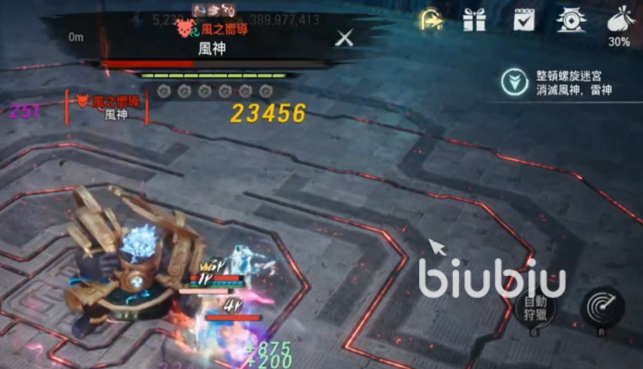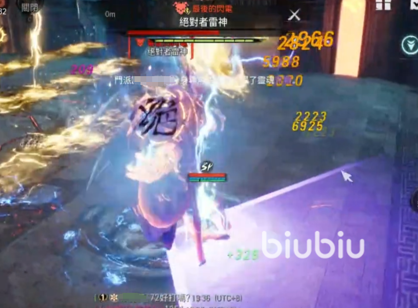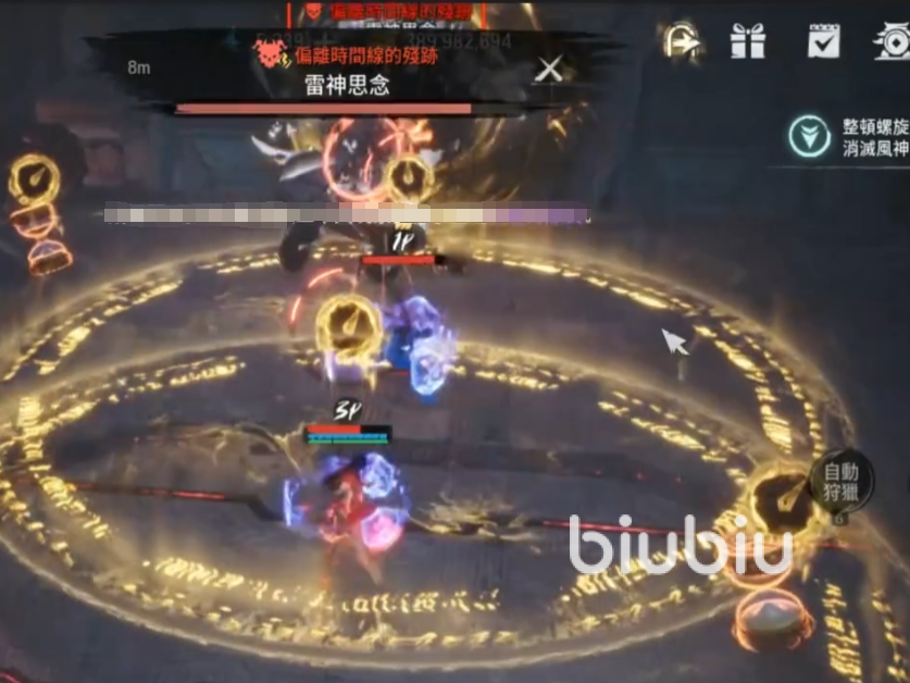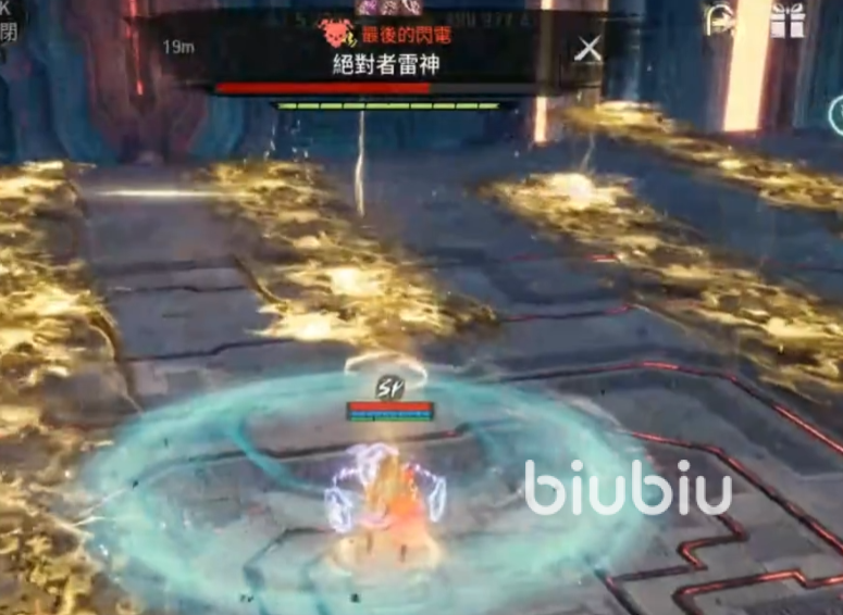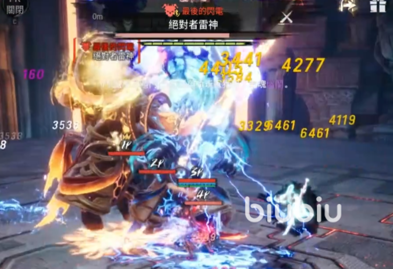 在雷神被击杀之前,绝对者风神的伤害并不是很高,建议大家先把雷神消灭掉,它的第一个需要注意的攻击手段是会催动一个全屏的雷电伤害,在圈里的玩家会被致盲一段时间,期间整个屏幕都是黑色的,只能看到伤害飘出,这个技能不需要特殊应对,只要注意在黑屏期间不要移动就好,等再次恢复视线,大家能看到地面上有很多雷电形成的区域,不要触碰不然会一直掉血,可以利用追击技能闪现到雷神的背面,躲避面向去攻击他。