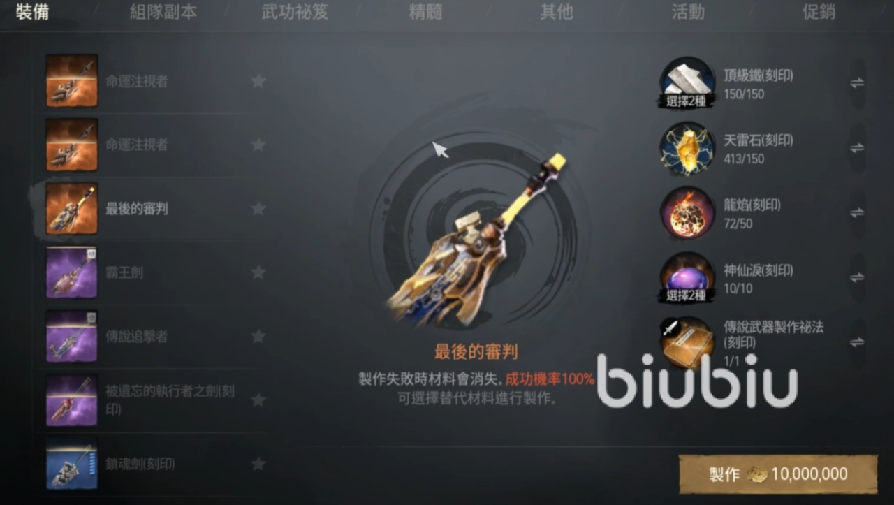 第三种获取橙色武器的方式就是直接在交易行里面买,交易行里经常会有玩家出售自己职业用不着的橙色品质武器,还有橙色品质的装备和八卦牌也都可以在拍卖行里直接购买获得,需要注意的是在拍卖行里买东西时需要用到神石的,神石要充值才能获取,所以不建议微氪党和零氪党玩家使用这个方式去获得武器,代价太大。