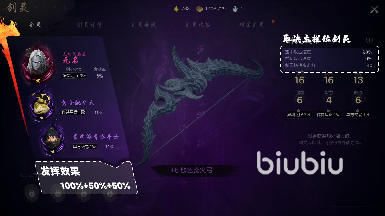 游戏里的剑灵就相当于给武器进行了一次额外的附魔,每一个剑灵都有自己的属性值和剑气效果,把他们装备上以后就能直接让自己的武器得到增益,每把武器可以有三个剑灵共同加成,每个剑灵可以百分比增加剑气效果的触发概率,同时主位置的剑灵能有100%的效果,剩下两个辅助剑灵也能触发50%的效果,而剑灵本身的面板属性只有主剑灵的属性会叠加在武器上,所以如果大家不知道把哪个放在主位,很简单——比比属性就可以了!