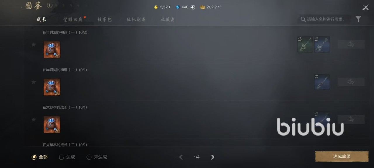 在游戏的主页面中,可以直接点击进入到图鉴系统,这里分为成长、觉醒回廊、故事包、组队副本和收藏家等不同选项。其中成长部分记录的就是大家在主线过程中所经历的一系列冒险,只要能够达成相应的成就就可以获得奖励,包括绑定神石袋和星光剑灵召唤券等。这里不需要大家刻意去做,只要跟着剧情去走就是了。