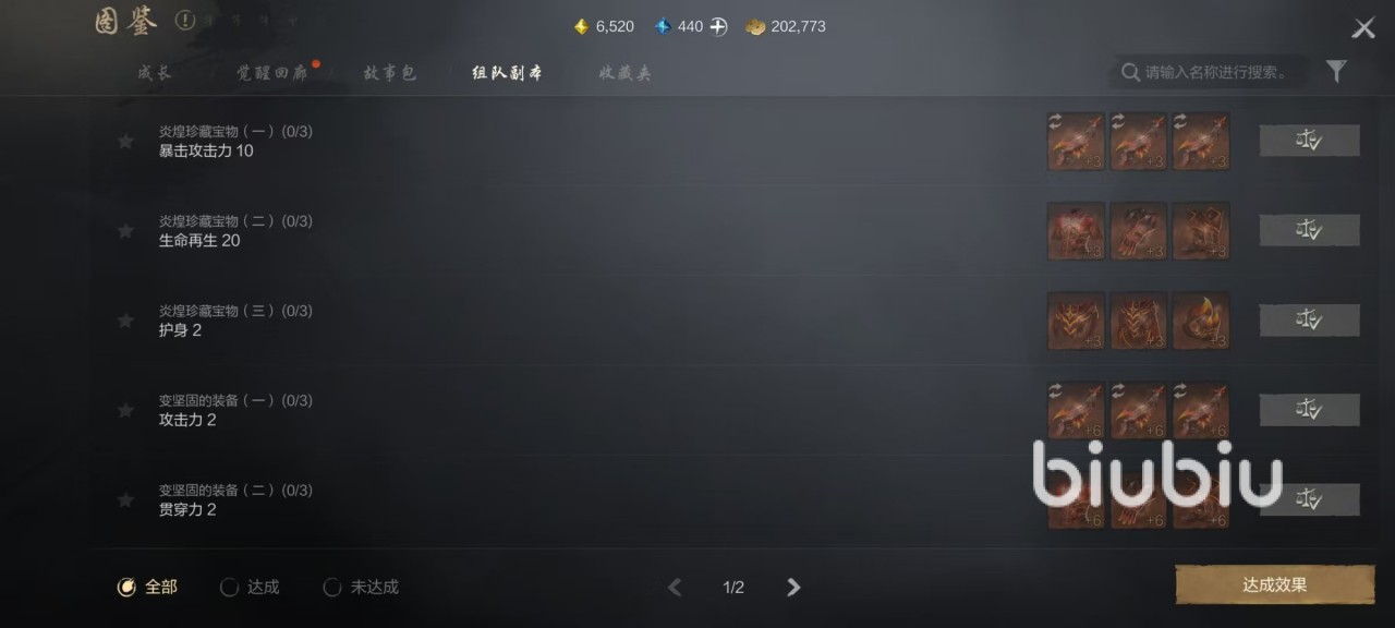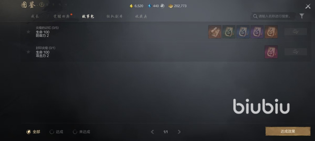 故事包图鉴是整个图鉴系统中最容易完成的,解锁需要花费金币,只需要体验完毕后,就可以完成登记了。最后是收藏夹,收藏夹功能指的是图鉴任务前都有一个星星标志,点击之后就可以把该人物加入收藏夹,方便自己查看。在收藏夹中还有全部、达成和未达成三个按钮,根据需求来进行筛选图鉴任务,完成图鉴任务后,右下角达成效果来查看自己的加成能力值。