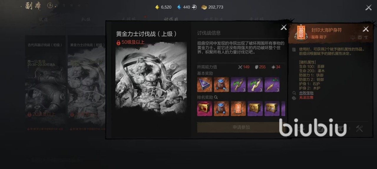 在讨伐战中,包括古代兵器讨伐、黄金力士讨伐等,不同副本掉落的奖励也有所区别。例如在古代兵器讨伐战中,掉落的就是封印恶意挂饰,使用时可以获得两个赋予随机属性的饰品,前缀词根据赋予的随机属性决定。黄金力士讨伐战中赠送的就是封印大海护符,也会给予两个随机赋予属性的饰品。