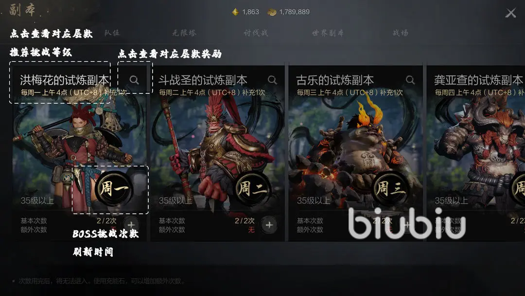 首先可以参与的是单人试炼副本,该挑战里面每个关卡的BOSS都固定的,能根据对手的情况来灵活的改变打法,挑战的层数越高,那么后续的难度就会越大,当然通关后能够拿到的奖励就越多。