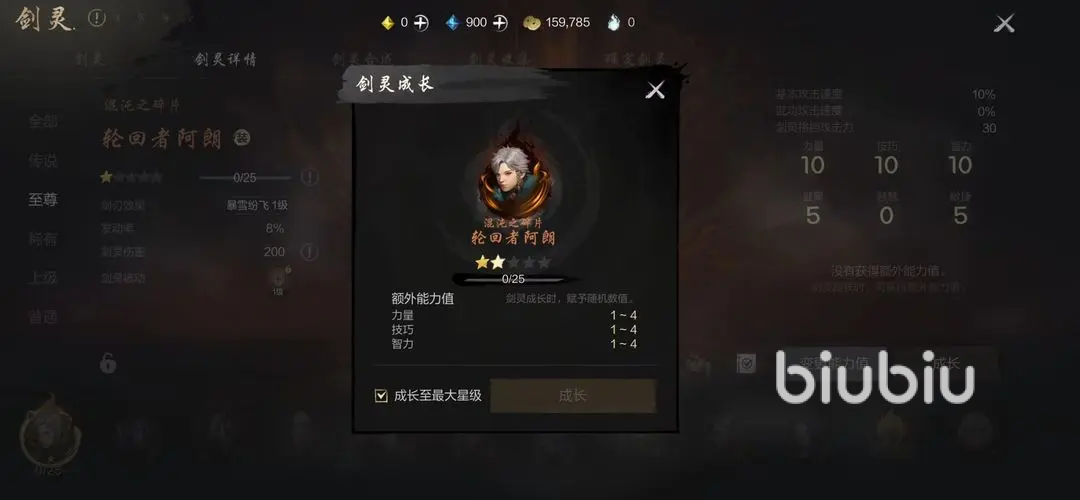 剑灵成长:主要的渠道就是养成升星,对于重复的剑灵会自动分解为25个剑灵碎片,积攒到一定量的剑灵碎片,足够剑灵的数量就能让剑灵顺利完成升星。升星之后的剑灵能力值就能获得提升,最高升星能提高到满星五星。而且剑灵的能力值也可以变更,比如说消耗金币能随机重置剑灵升星后获取的能力值,能给到大家更加灵活便捷的操作方法。
