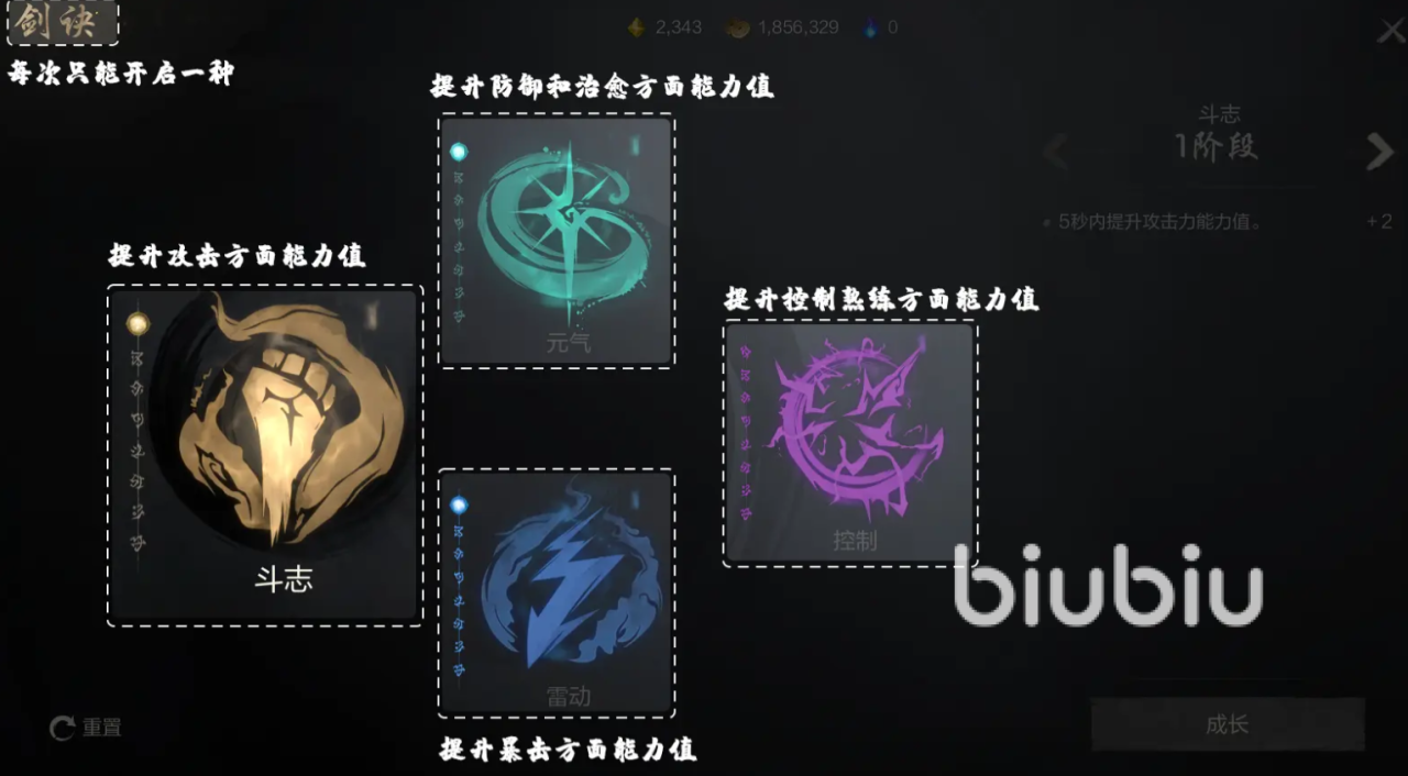 剑诀系统会在角色达到15级并完成第一章后开启,这个时候大家能在角色的血条旁边,看到一个“剑诀”按钮,点击就可以进行开启,之后每次使用普攻会激活剑诀,获得角色属性和技能增益效果,来提升角色的战力,应对高难战斗,目前剑诀分4种分别是斗志、元气、控制和雷动,每次只能开启一种,斗志会提升攻击方面,元气会提升防御和治愈,控制会提升控制熟练度,雷动则是提升暴击方面,大家可以根据目前战斗场景需求开启合适的,另外由于它的开启和养成都需要消耗相应的材料,建议大家平时多多囤积。