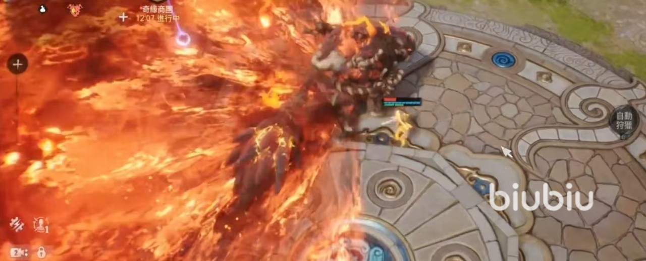当古乐头上出现危字的时候,它会使用出三连锤,释放出强大的力量,这时一定要注意走位躲避了。还有两段闪,第1段闪,吐出紫色能量波,杀伤力非常强,第2段闪,经过蓄力后正面暴击锤地面,成功闪避之后就可以触发衰弱,并触发QTE技能打出高额伤害。当boss的血量被攻击过半之后,会使出更猛的蓄力挥锤暴击,攻击的时候还会伴随着扇形的紫色火焰伤害,火焰覆盖的面积非常广,一定要注意闪避开躲开扇形灼烧范围。